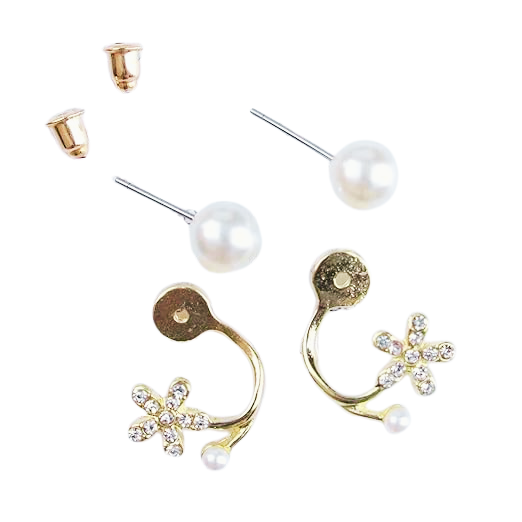Make a statement with our Clementine earrings! These 2 in 1 beauties feature flower faux pearls - worn alone or with shiny rhinestones, and a dangling design. Perfect for adding a touch of elegance to any outfit. (Pearls and sparkle? Yes, please!)