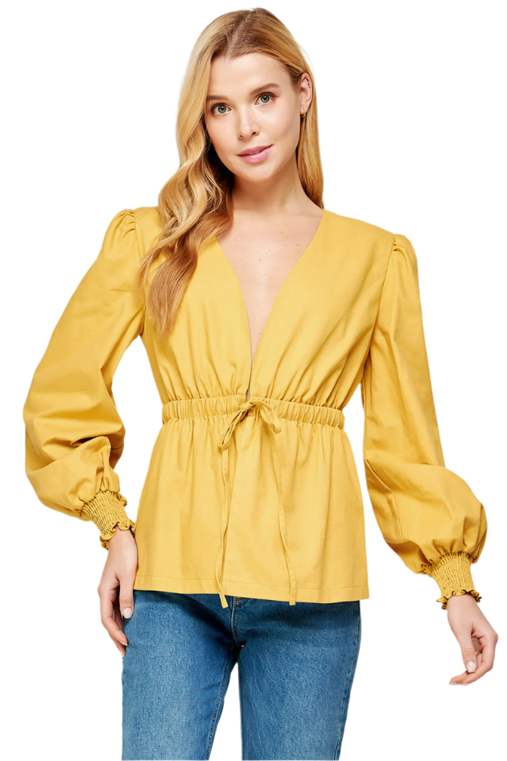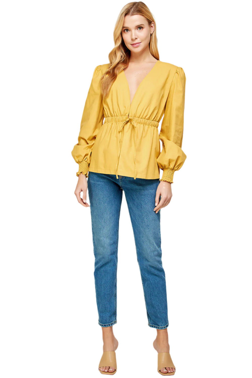 Muted Yellow open back linen blazer