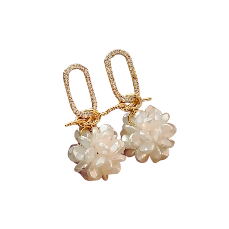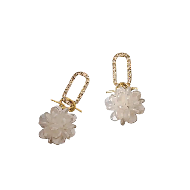 Be the talk of the town with Genevieve! These White Flower Shiny Rhinestone Inlaid Dangle Earrings add a touch of elegance and sparkle to any outfit. Stand out with these beautiful and unique earrings that will surely catch everyone's eye!