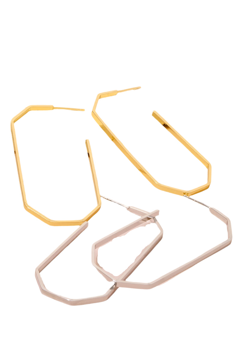 Elevate your style with our Jandi hoops! These playful oval octagon earrings come in both 14k gold-dipped and sterling silver-dipped options. Mix and match or wear as a set – these versatile beauties add just the right amount of sparkle to any outfit. Prepare for compliments!
