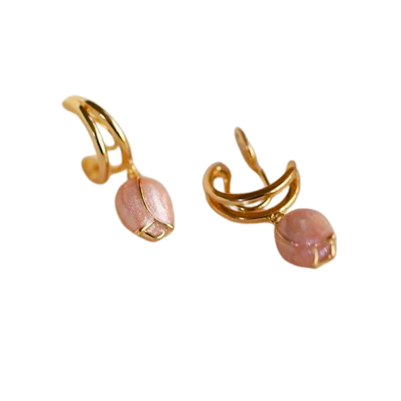 Get ready to bloom with Nellie! These pink Tulip hoop earrings are the perfect accessory for adding a touch of playful charm to any outfit. Embrace your feminine side with these uniquely designed earrings that are sure to turn heads. (No watering required!)
