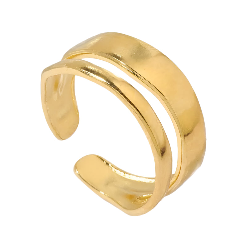 Meet Niriko, the adjustable double band ring that adds a touch of elegance to any outfit. Made with durable 18k gold plated stainless steel, this ring is not only stylish, but also built to last.