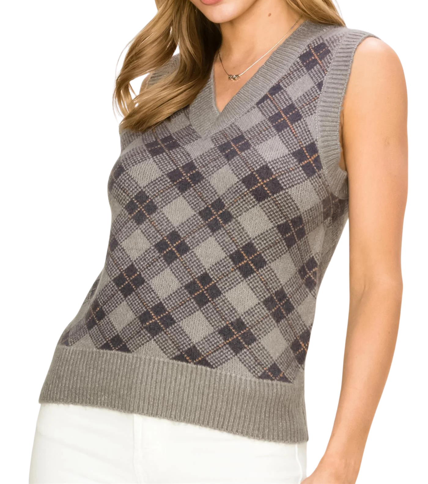 Stay stylish and cozy with the Noelani Argyle Pattern Sweater Vest. This versatile vest features a classic argyle pattern that adds a touch of sophistication to any outfit. Perfect for layering or wearing on its own, this vest is a must-have for any wardrobe. (Argyle you glad you found this sweater vest?)
