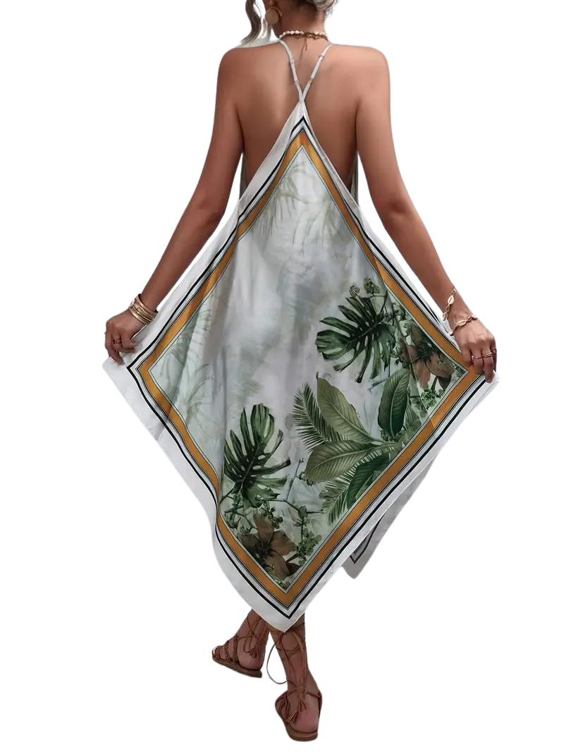 Introducing Reese - the dress with a twist! Made from scarves, this monstera print dress will add a touch of whimsy to your wardrobe. Perfect for any occasion, it's a versatile piece that's sure to turn heads.