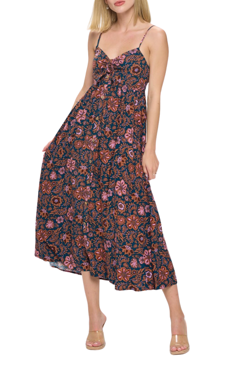 This vibrant Paisley Print Maxi Dress from Sevyn will have you feeling like a bohemian goddess. With its front tie detail and flowy silhouette, it's perfect for any summer occasion. (Warning: may cause compliments and twirling).