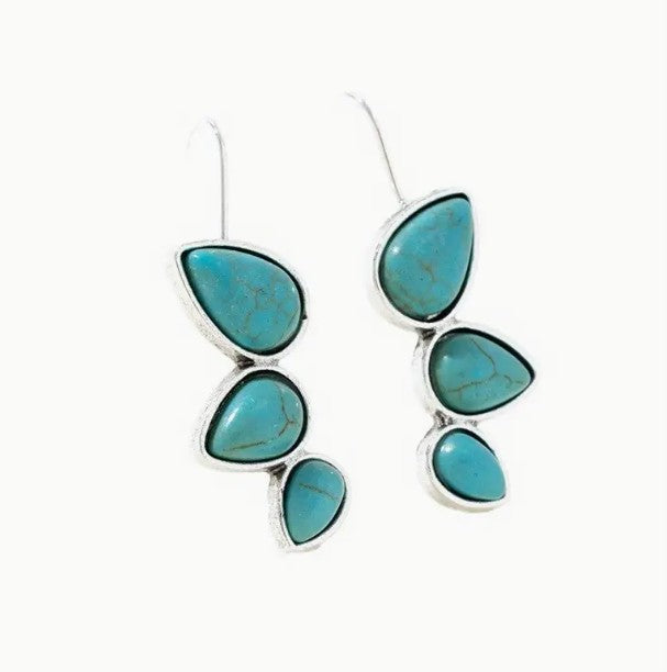 These earrings bring playful boho vibes with their faux turquoise drops. Lightweight and fun, they’re perfect for adding a splash of color to your everyday look.