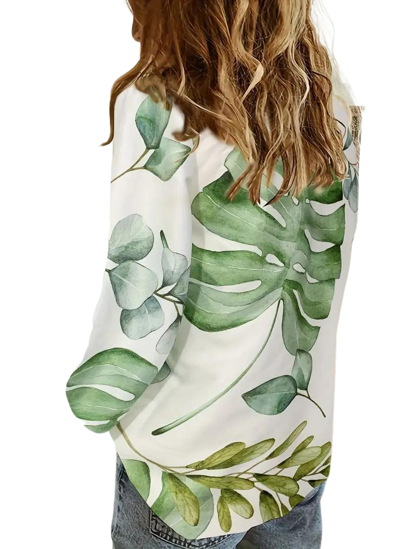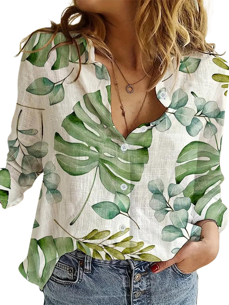 Meet Tessa - the perfect shirt for any nature lover! With its vibrant leaves print and comfortable button-front design, Tessa will have you looking stylish and feeling at ease. Perfect for any occasion, this shirt is a must-have for your wardrobe!