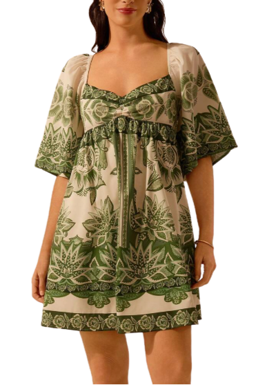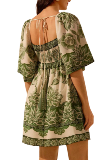 Get ready to stand out in the crowd with Toshiko - the boho tropical plant printed dress with an asymmetric neckline and flare sleeves. Perfect for a fun and playful look, this dress will have you feeling like a sassy fashionista.