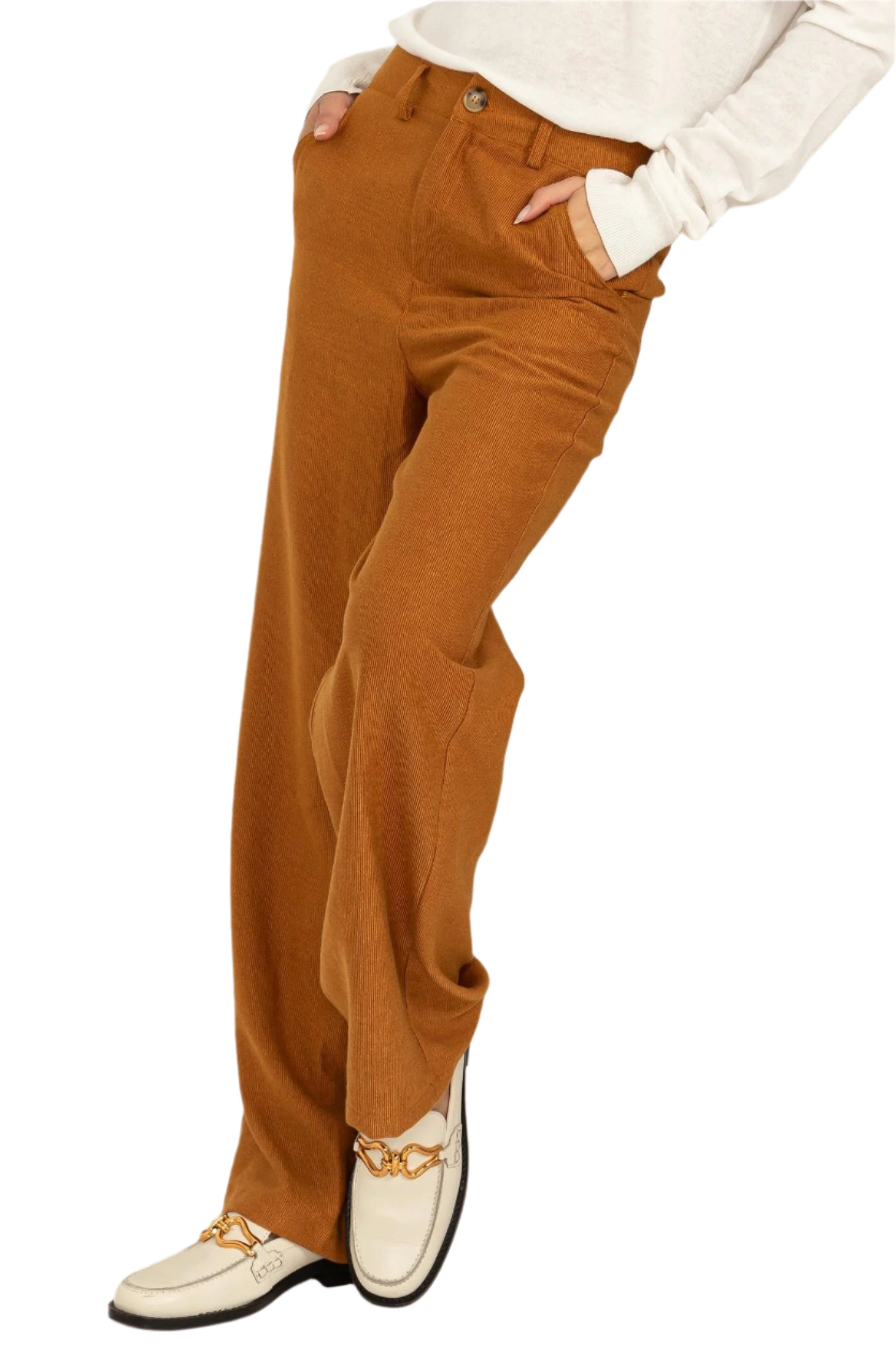 Get some serious babe vibes on with these stunning corduroy pants! This pair features a middle-rise silhouette that's secured with a top button closure, dropping down into straight-cut legs for that trendy look.